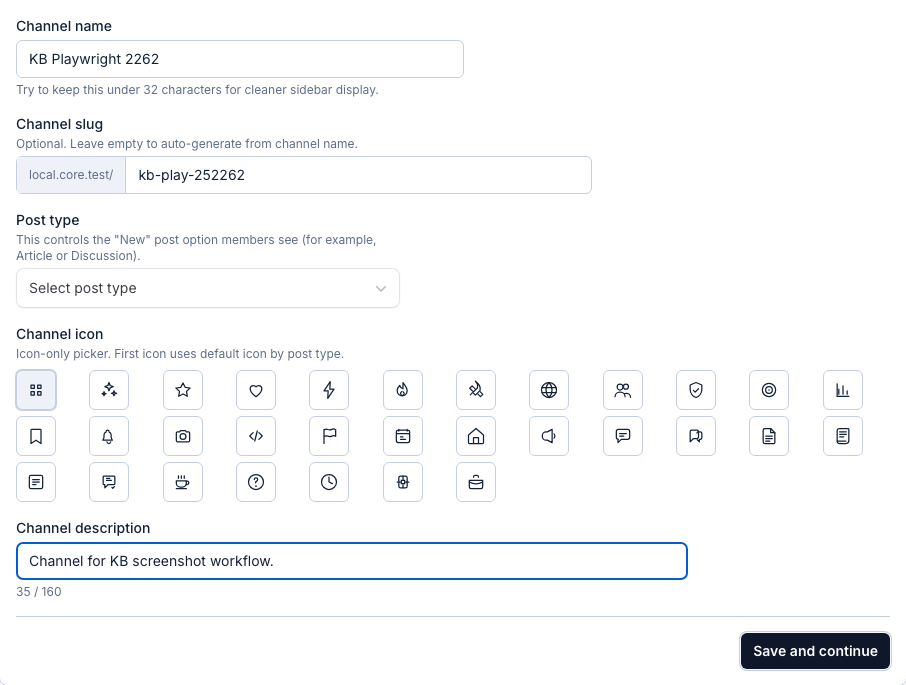 - Set a channel slug, or leave it empty to auto-generate.