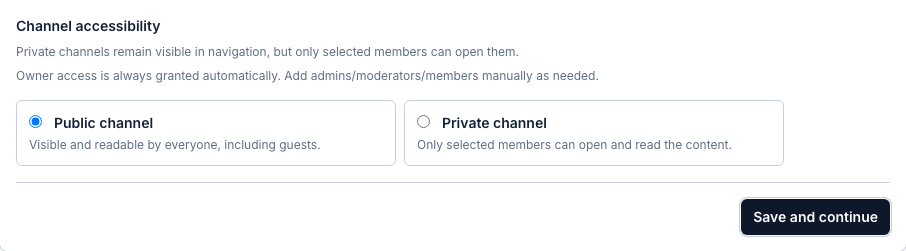 - Choose `Private channel` if only selected members should read it.