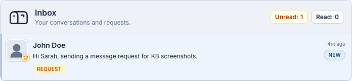 You can start message requests, accept or ignore incoming requests, and manage active conversations from Inbox.